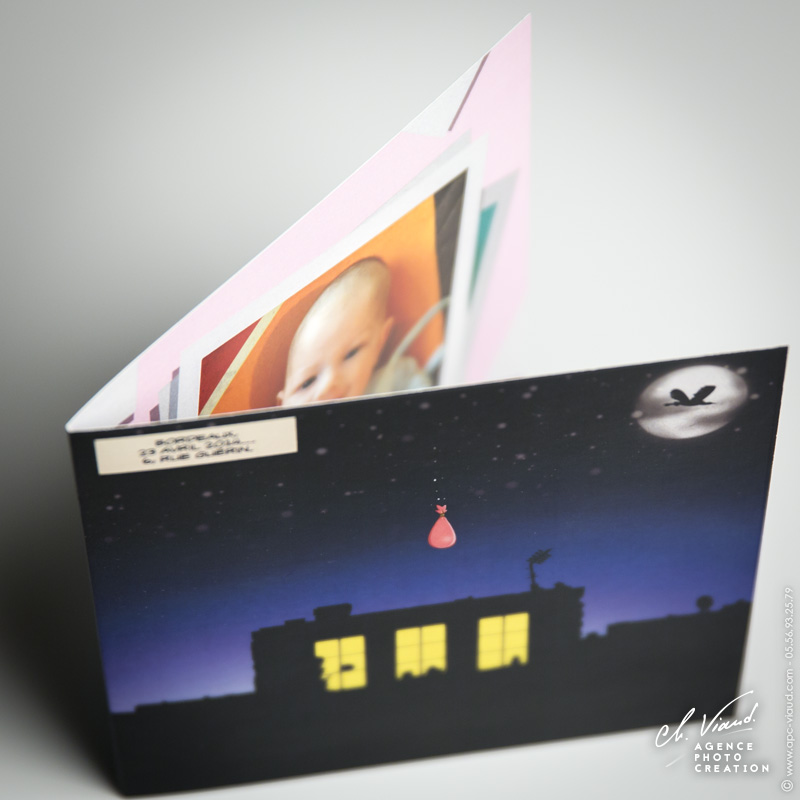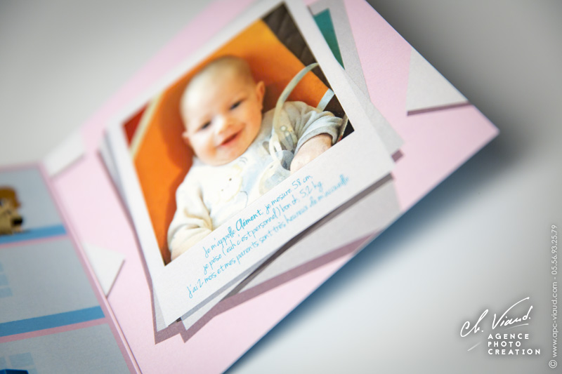 Le papa et la maman de Clément ont choisi de placer leur confiance en nous pour imprimer le faire-part de naissance de leur bébé. Ils ont choisi de signaler la naissance de l’enfant sur le ton de l’humour et de la douceur, avec une jolie gamme de couleurs pastel... Une impression en format carré en deux volets qui permet une mise en page originale accompagnée d’illustrations qui prêtent à faire sourire de Paoli Raoul, talentueux illustrateur de la région.