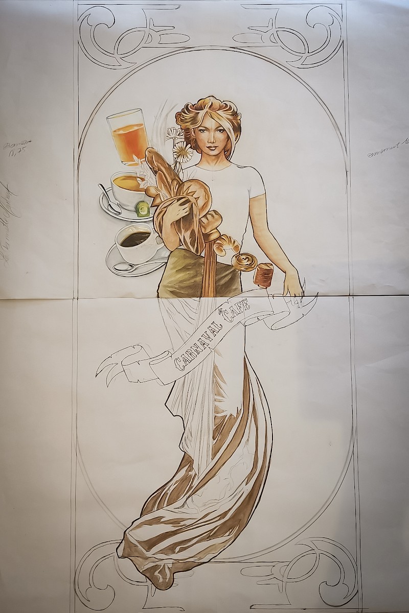 Une fois son travail de création à la main terminée (peintures, feutres, crayons... l'artiste travail avec plusieurs médiums afin d'apporter réalisme et singularité à ses créations), nous en avons fait une reproduction des plus précise et fidèle en studio photo, avec un appareil photo dédié à ce genre de travaux d'excellence : un Hasselblad, de manière à garder toute la qualité de ses traits de crayons, feutres et pinceaux.
