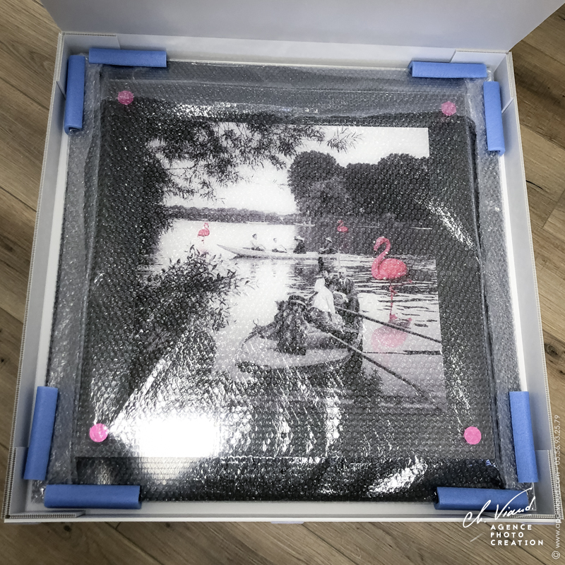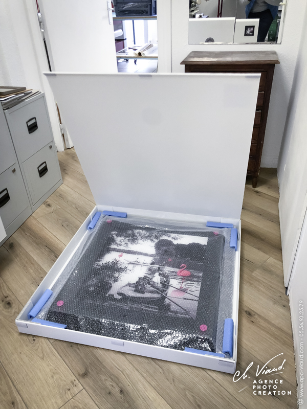 Sur demande nous créons pour vous des caisses en PVC solides et légères qui vous permettent de transporter vos œuvres en toute sécurité. Réutilisables, ces caisses vous accompagnent à chacune de vos expositions et vous permettrons aussi de stocker vos tirages chez vous en attendant le prochain accrochage ! Vous avez besoin d'expédier un tableau par transporteur ? Nos caisses sécurisent votre oeuvre et vous permettent de l'envoyer en toute confiance.