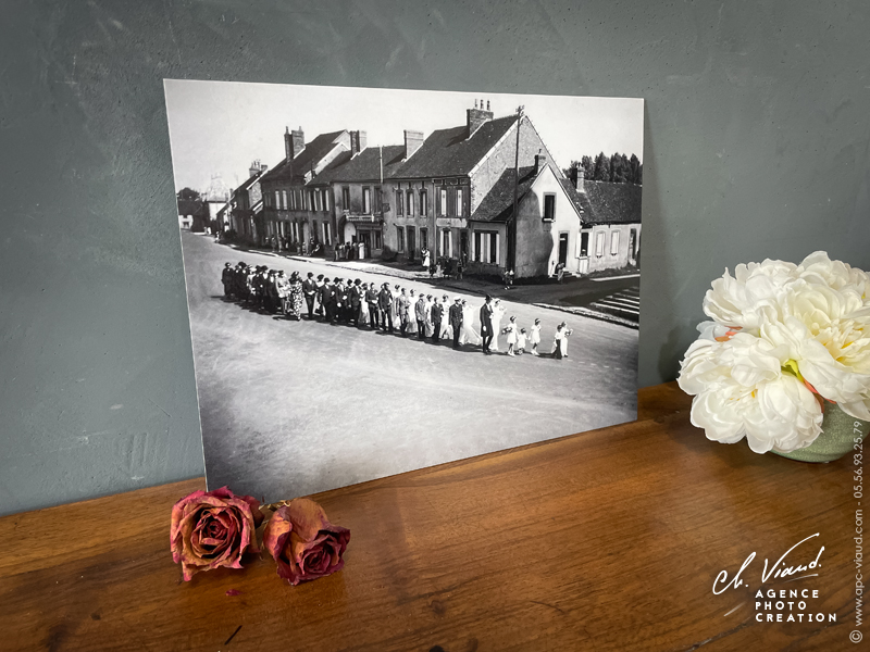 Lorsqu’une photo ancienne ou précieuse mérite d’être mise en valeur, il est possible de lui donner une seconde vie grâce à un travail complet de numérisation, restauration et agrandissement. C’est exactement ce que nous avons réalisé pour ce projet, en associant savoir-faire et finitions soignée.